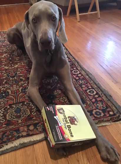 Dad was excited and gave me one of the Dental Bones from Mercola, which is not only tasty but healthy for my teeth. Little does he know I am really training him! WINK! I stole the box off the counter and Mom caught me but I was disappointed there was none left so helpfully they will buy me more.