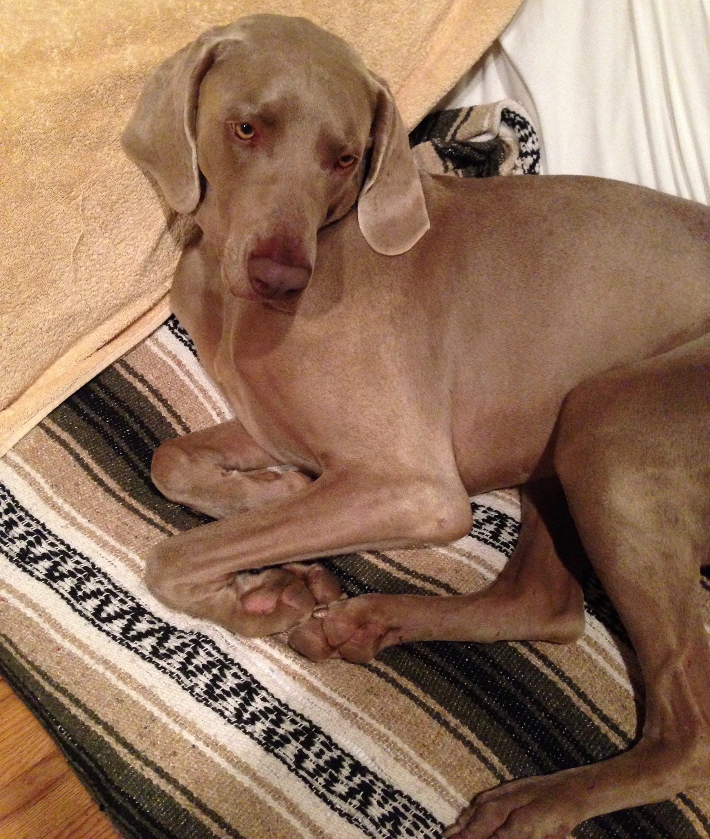 The weather has been colder in Santa Monica so the Weather Weimaraner reports a cooler high of 60 degrees today. Our house is quite chilly so please send blankets but remember to wrap butter in between.