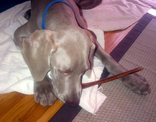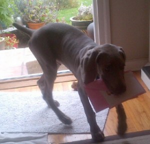 Needless to say, Mom got involved and got me to come in the house. Still after I was locked away from the fluffy intruder I went postal pacing to and fro. That of course was not well received and Mom put me in my crate for the night.