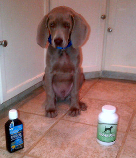 More importantly, since I write this healthy eating puppy blog I do know it is essential to include my daily regime of exercise, good food, nice people, rest and my vitamins. Can you believe this morning the parental units forgot my vitamins? I took it upon myself and I went into the kitchen and got the bottle right off the counter and what surprised them the most was that I opened the bottle. Those big paws come in handy at times!