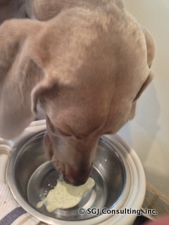 Finally it was done and because I was so good I got to sample the rich pudding. However, because it was so rich Mom was not going to allow Dad to feed me enough since it has a little more sugar than I’m used to – I guess I have to expect that having a dietitian for a Mom.