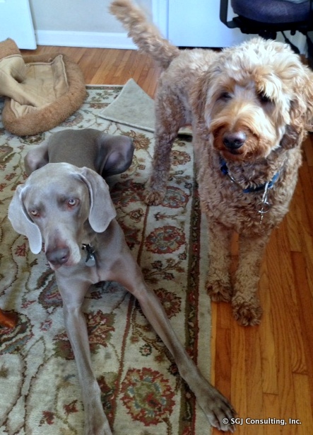 The next day she was much sweeter to me and we played nicely in the sandbox. We even hung out together and had snacks side by side. AND when another dog walked by the house she joined me at barking at them – how’s that for camaraderie? I was actually a little sad to see her go but since Mom is friends with her Mom I’m sure I’ll see her soon enough.